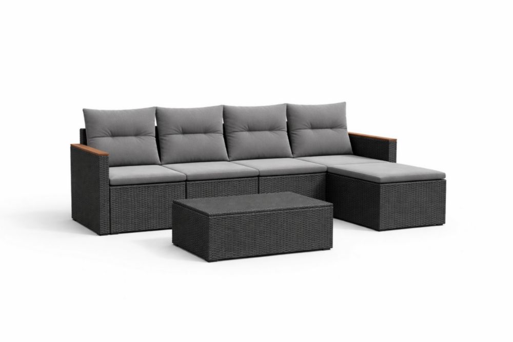 Ensemble de canapé d'angle extérieur en résine tressée gris avec coussins en polyester et table basse