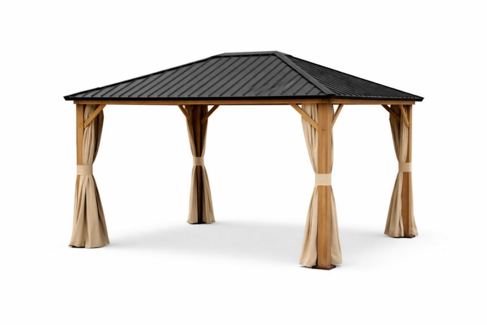 Tonnelle de Jardin en bois massif et Acier Toit Noir